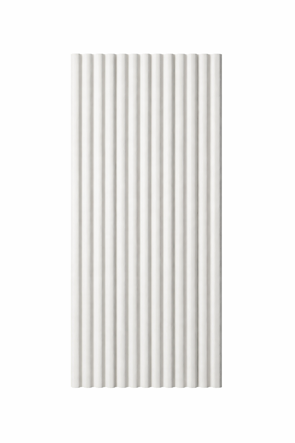 Panel de listones en color blanco diseñado para revestimiento de paredes interiores. Perfecto para crear espacios modernos, luminosos y elegantes.