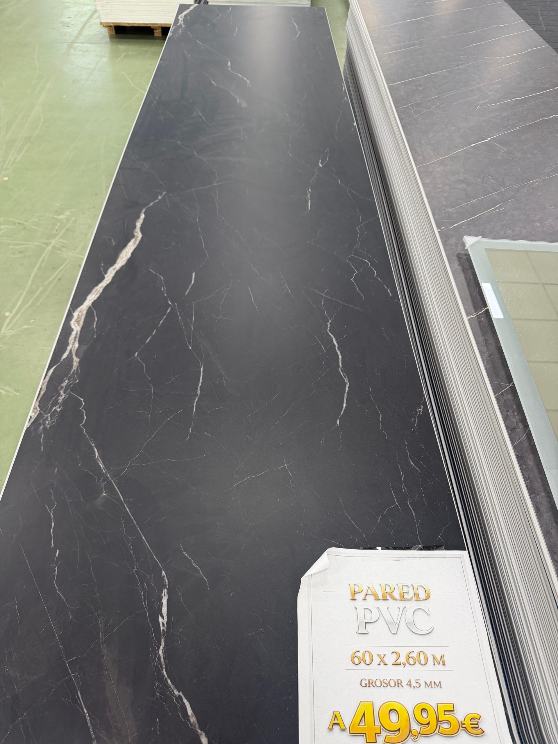 Panel PVC marmol negro veta fina 60×260 cm